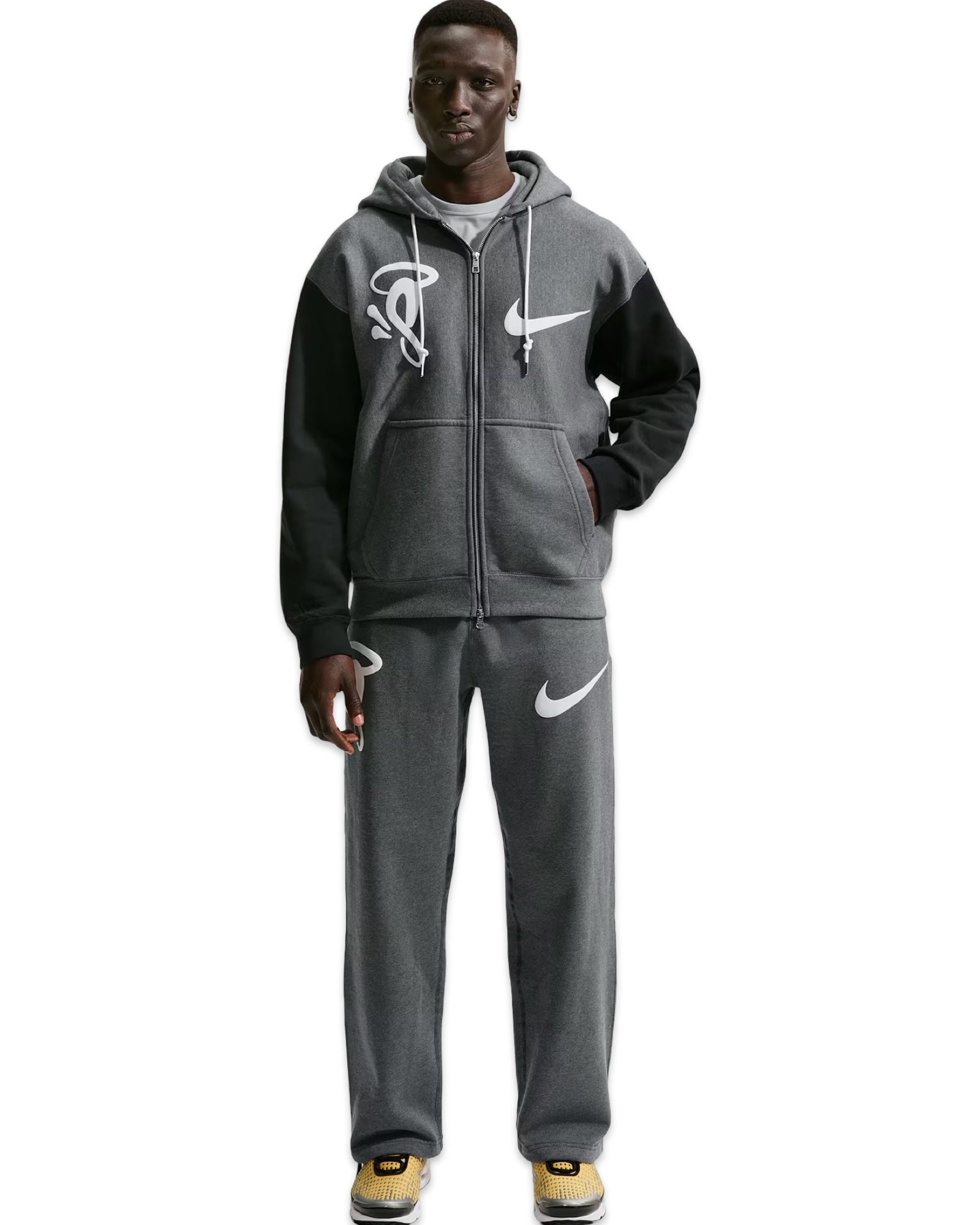 Iconic partnership with industry heavyweight Nike and Central Cee's Syna World. This plush fleece zip-up hoodie arrives with a loose fit, contrasting sleeves and graphics repping both The Swoosh and Syna.