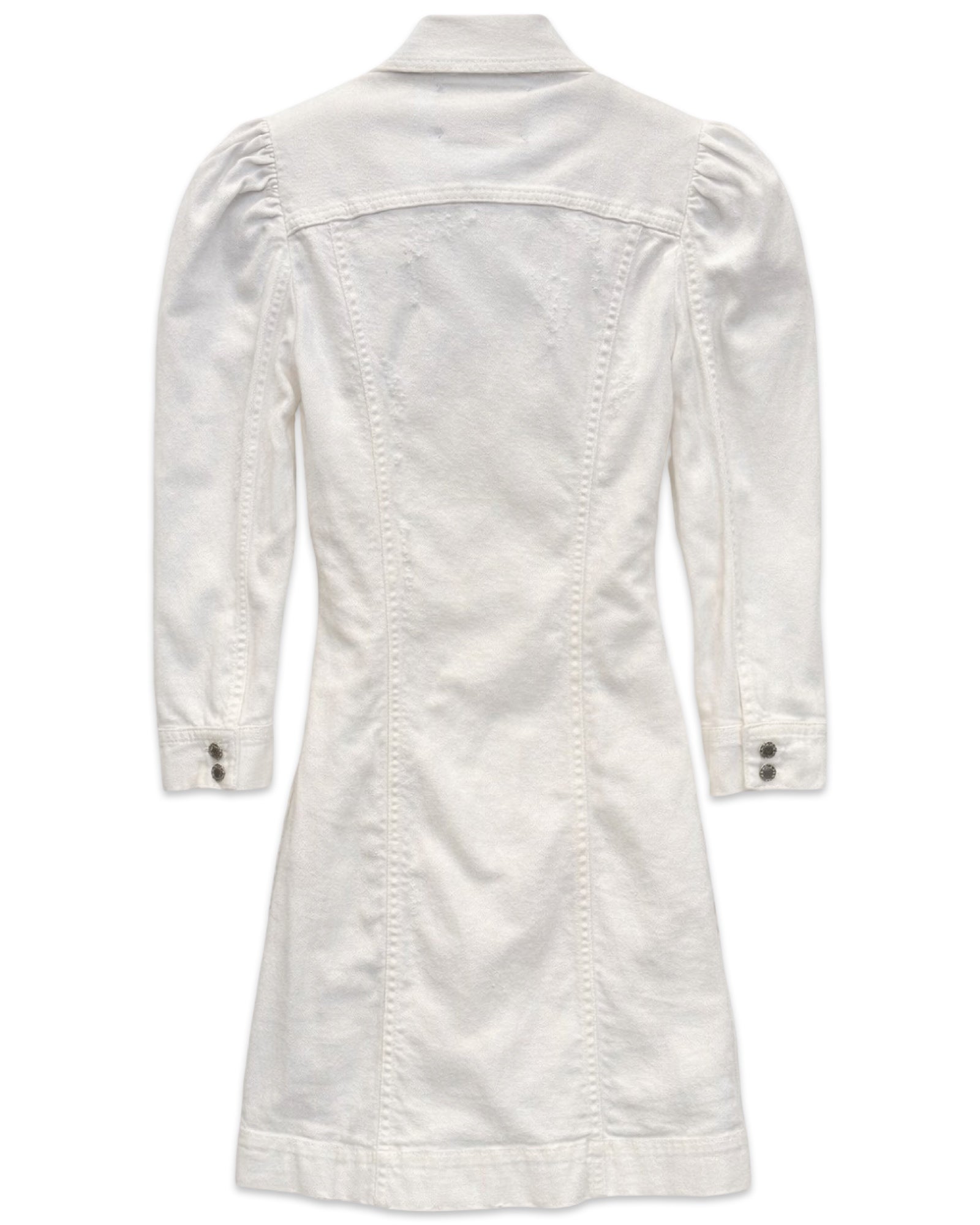 Retrofete’s Lema Dress is a classic mini. Cut in denim, the vintage-inspired silhouette features front button closures, puffed sleeves and distressing.