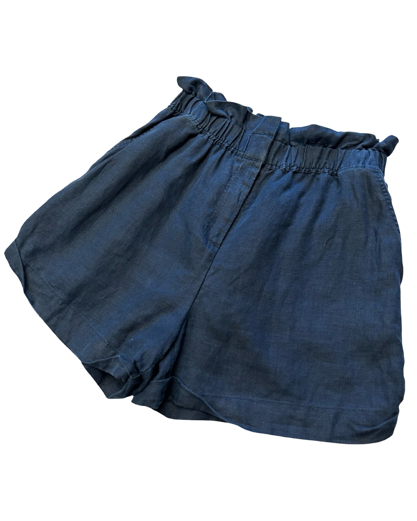 Witchery High-Waisted Linen Paperbag Shorts in Navy
